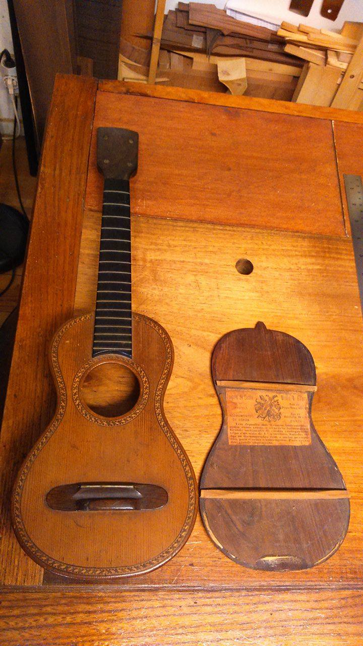 Fotos do resultado final da construção de cavaquinho modelo urbano, pelo Luthier Orlnado Trindade, Cavaquinho modelo urbano, baseado num modelo original da segunda metade do séc XIX de: